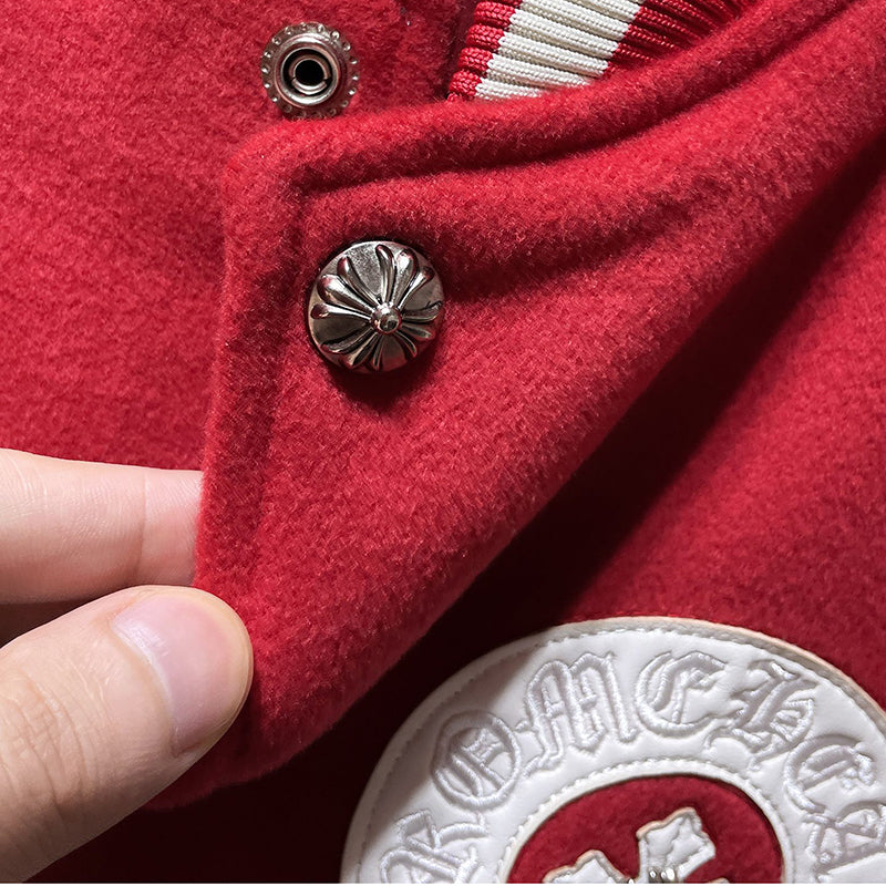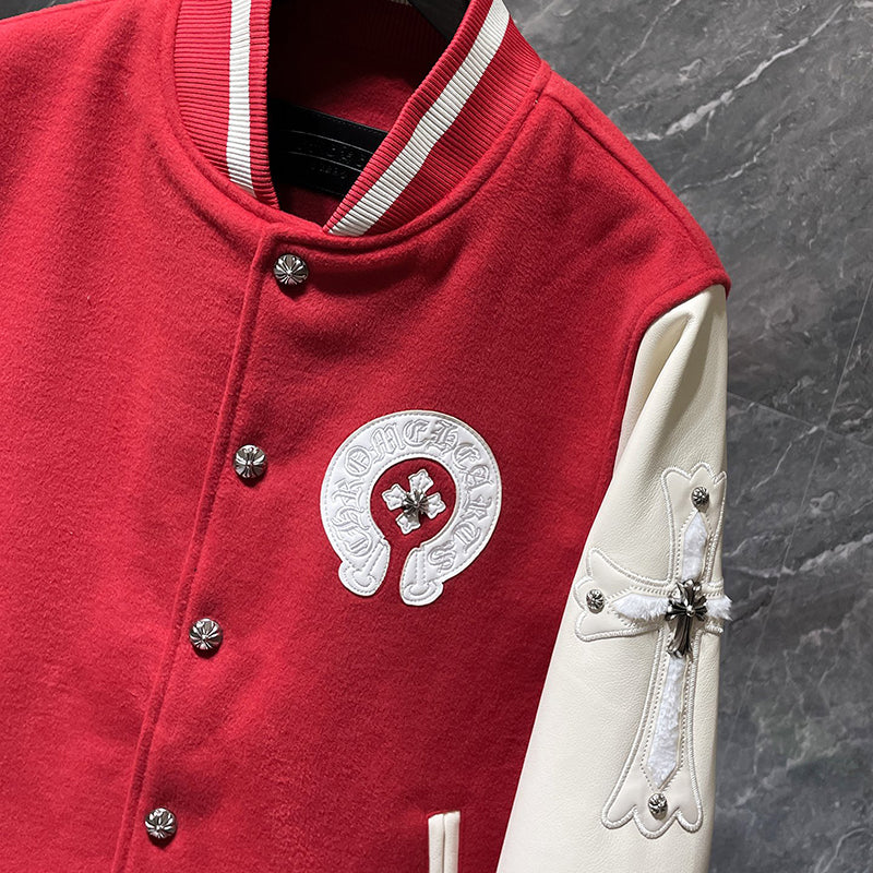Chrome Hearts Sanskrit Cross Embroidered Baseball Jacket #8657