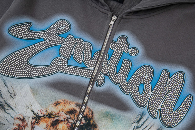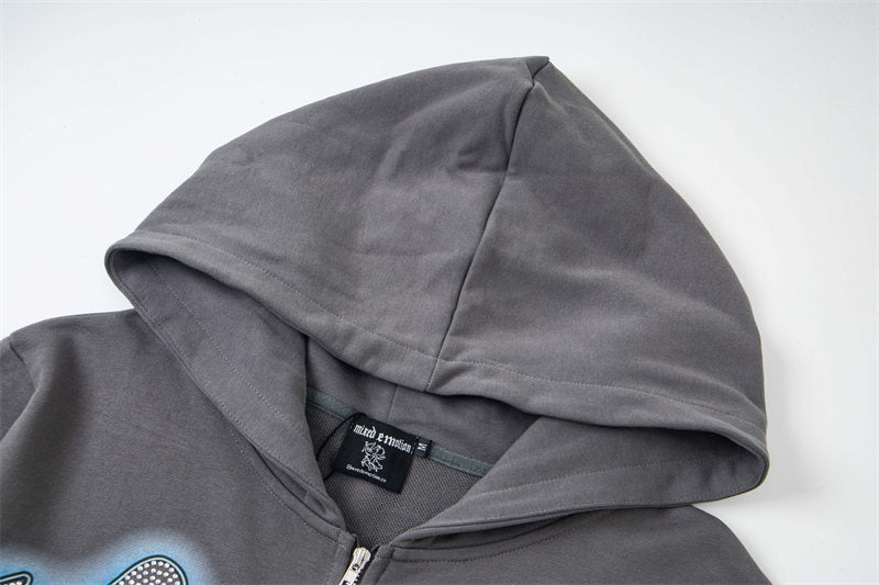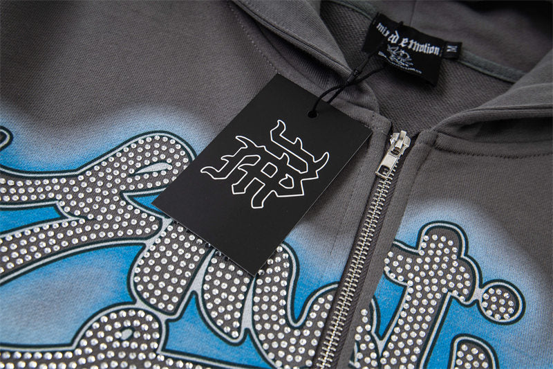 MIXED EMOTION Grey Rhinestone Hoodie