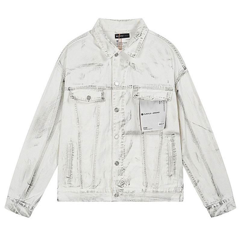 Co-branded vintage washed denim jacket