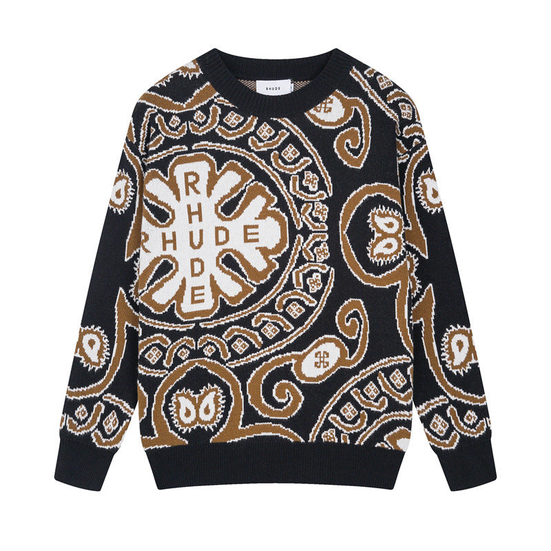 RHUDE micro-logo letter totem jacquard round neck sweater