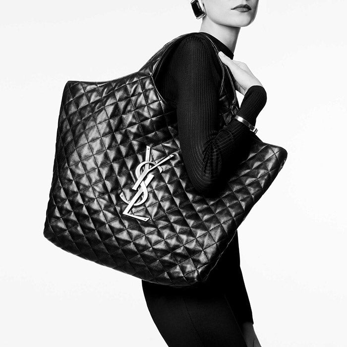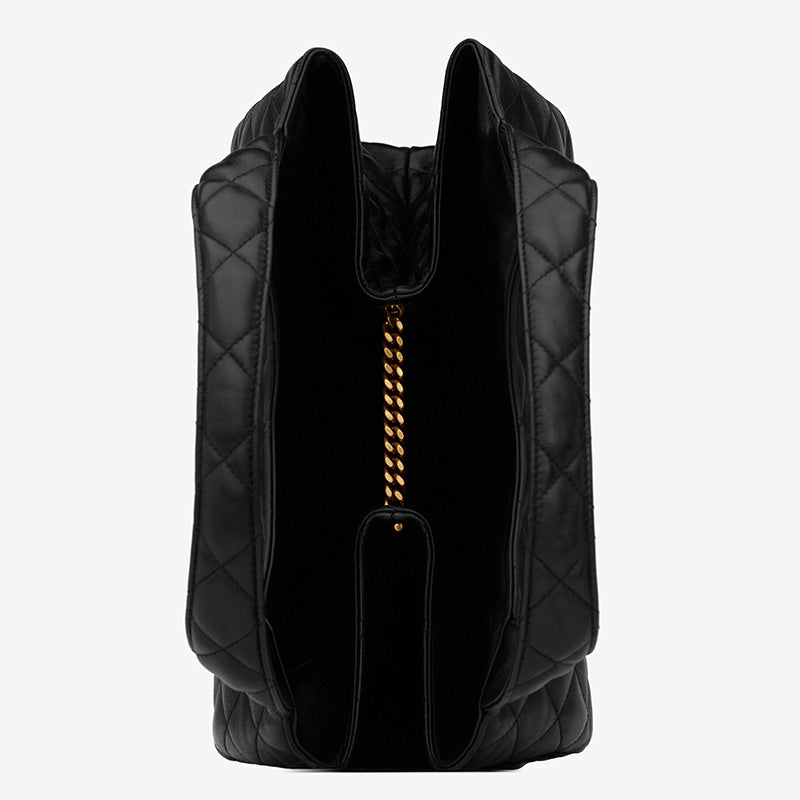 MAXI shopping bag with lariat closure, square quilted overlock and classic YSL signature.